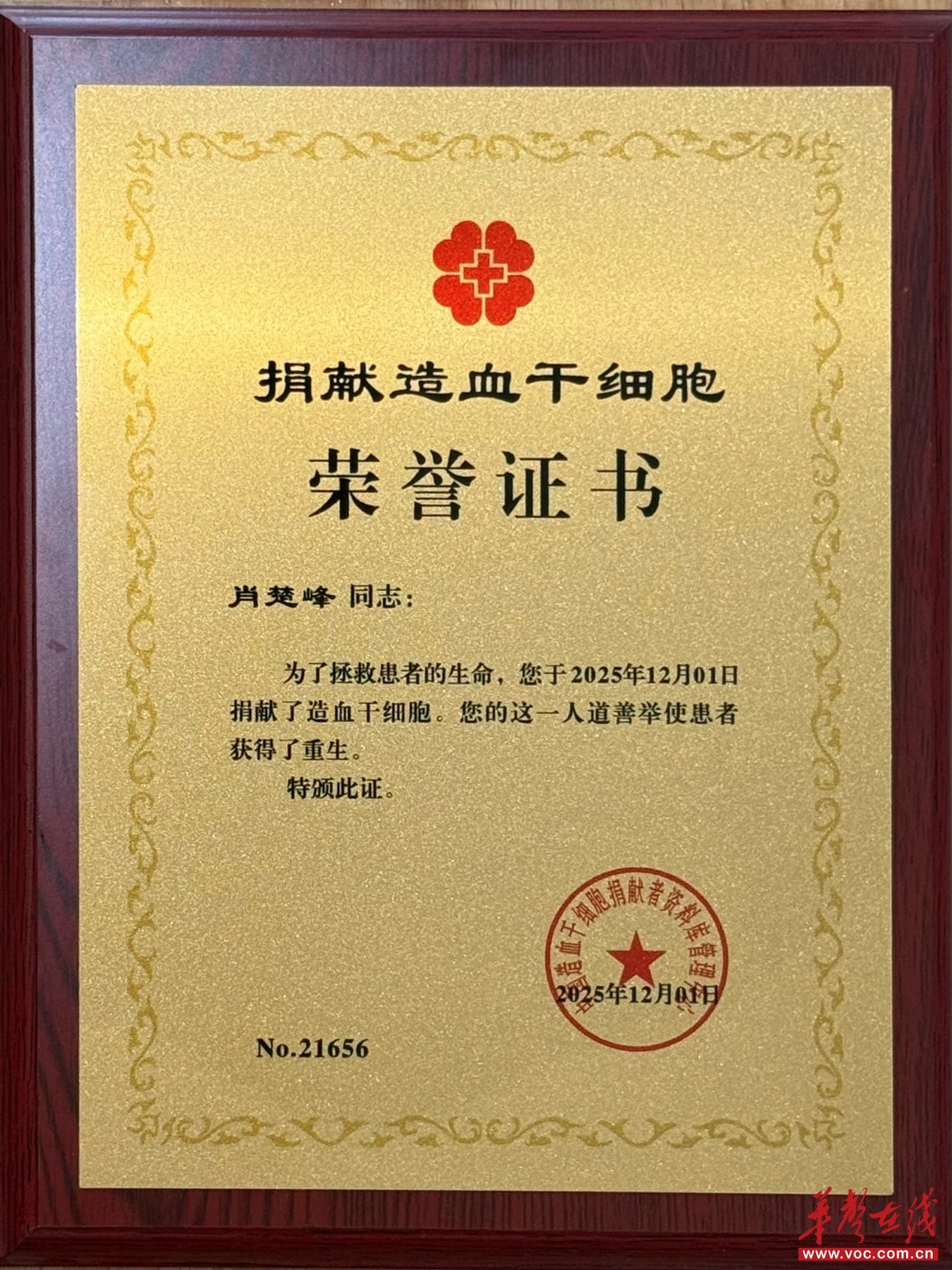 武岡市紅十字會負責人表示,肖楚峰是武岡首例造血干細胞捐獻者,用行動踐行了“人道、博愛、奉獻”的紅十字精神,展現了當代青年的責任擔當。近年來,武岡市紅十字會致力于推動“三救三獻”工作,不斷宣傳動員更多愛心人士參與其中。截至目前,該市已有近200名志愿者加入中華骨髓庫,用責任和善意搭建起生命救助的橋梁。
