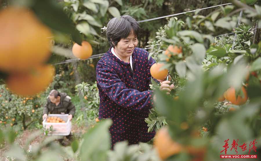 洞口縣毓蘭鎮楊柳村,農民在采收柑橘。