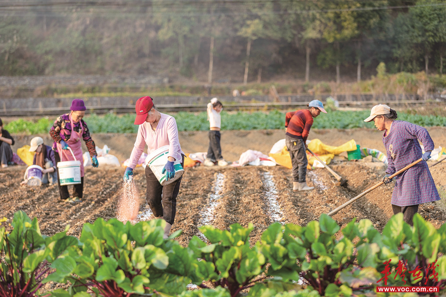 吉首市乾州街道西門口村,農民在田間翻地、施肥。