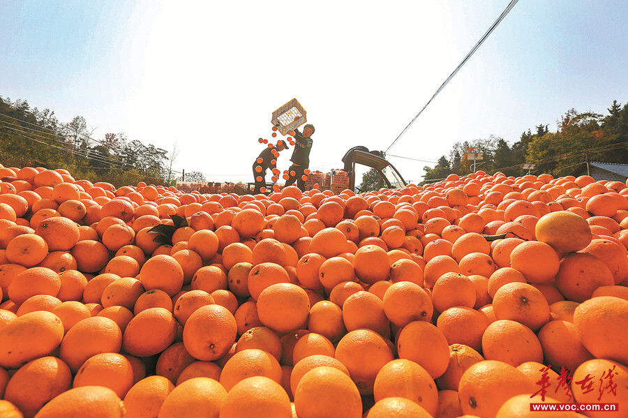 12月7日,龍山縣里耶鎮比耳村,果農在堆放采摘的里耶臍橙。趁著連日晴好天氣,當地果農加緊對里耶臍橙進行采摘、分級、包裝,確保新鮮優質的果實及時供應市場。