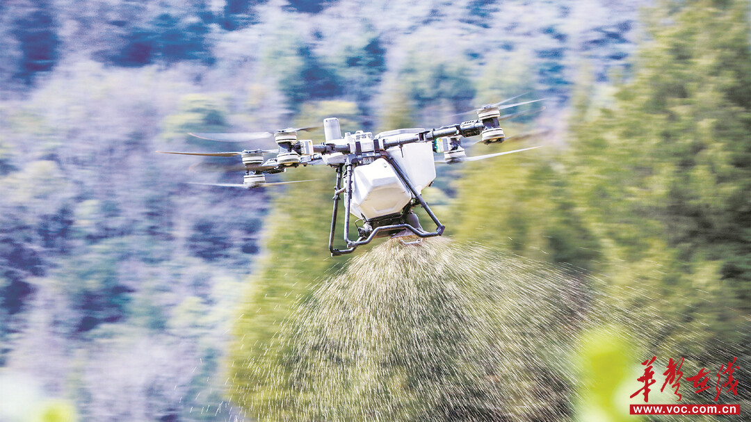 3月4日,龍山縣茅坪鄉水沙坪村,植保無人機在百合田里開展施肥作業。